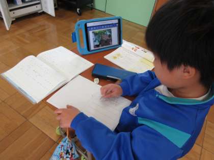 5月23日(木) 2年国語 公開日 2024/05/23 更新日 2024/05/23 できごと 「かんさつ名人になろう」の学習で、めあて「くふうして、文しょうを書こう」を立て、「なにが」「なには」(主部)や「どうやって観察したか」、「みたいだ」「ようだ」(述部)を意識しながら文章づくりをしました。