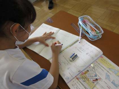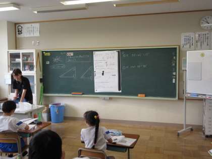 めあて「三角じょうぎの角の大きさを調べよう」を立て、分度器を使って2つの三角定規の角度を測りました。