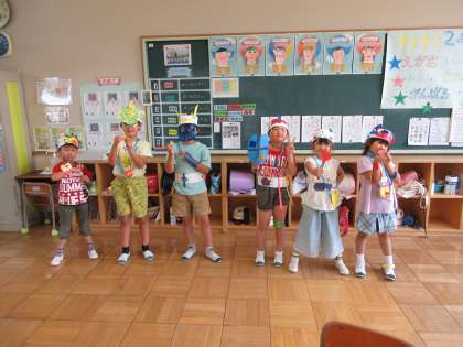 5月24日(金) 2年図工 公開日 2024/05/24 更新日 2024/05/24 できごと 「わっかでへんしん」で、めあて「くふうしてつくって、へんしんしよう」を立て、冠やベルト、首輪、腕輪などをつくって変身をしました
