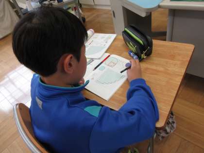 5月28日(火) ひびき算数 公開日 2024/05/28 更新日 2024/05/28 できごと めあて「面の面積をくわしく求める方法を考えよう」を立て、1cm方眼に描かれた図をもとに求め方を考えました。
