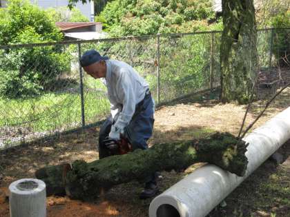 地域の方が来校し、児童の安全を考え、桜の木の枯れ枝等の剪定をしてくださいました。