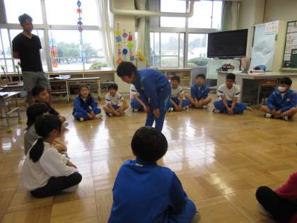6月18日(火) キッズタイム(妙義団) 公開日 2024/06/18 更新日 2024/06/18 できごと 雨天のため、教室で「リーダーを探せ」を行いました。鬼になった子は、誰がリーダーなのか一生懸命、友達の動きを見て探していました。