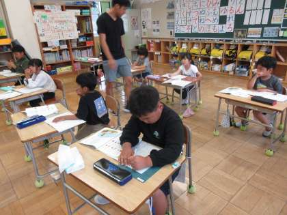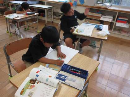 「おばさんとおばあさん」で、めあて「のばすことばをたくさんさがそう」を立て、長音について学習しました。