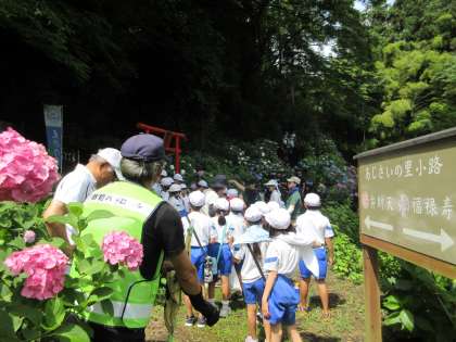 地域のボランティアの方にもご協力いただき、全校児童で八塩あじさいの里にてあじさい鑑賞を楽しみました。