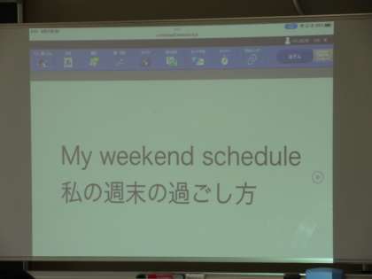6月27日(木) 6年外国語【進んで学ぶ子】 公開日 2024/06/27 更新日 2024/06/27 できごと 「I (never/usually/sometimes/always)at (a.m./p.m.)を使って、「My weekend schedule(私の週末の過ごし方)」をプレゼン発表し合いました。