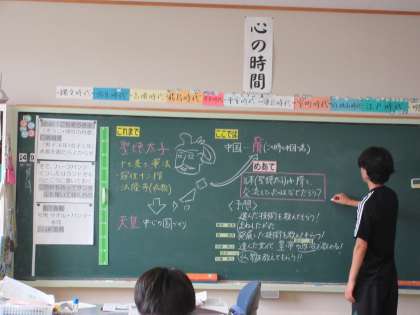 7月2日(火) 6年社会【進んで学ぶ子】 公開日 2024/07/02 更新日 2024/07/02 できごと 「天皇中心の国」の学習で、聖徳太子はなぜ隋(ずい)に使者を送ったのか、予想し、教科書の内容をもとにみんなで考えを深めました。