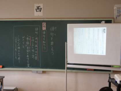 7月4日(木) 3年国語【進んで学ぶ子】 公開日 2024/07/04 更新日 2024/07/04 できごと 「俳句を楽しもう」で、めあて「俳句を知ろう」を立て、「5,7,5の十七音で作られた短い詩」「季語が入っている」「自然様子から感じられることを表している」などを学習しました。