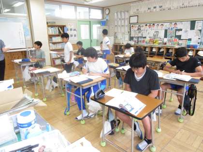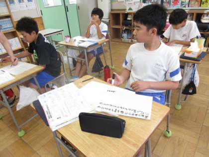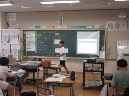 7月9日(火) 6年算数【進んで学ぶ子】 公開日 2024/07/09 更新日 2024/07/09 できごと 「角柱と円柱の面積」で、めあて「三角柱の体積を求めよう」を立て、昨日学んだ体積を求める公式「底面積×高さ」を用いながら考えました。