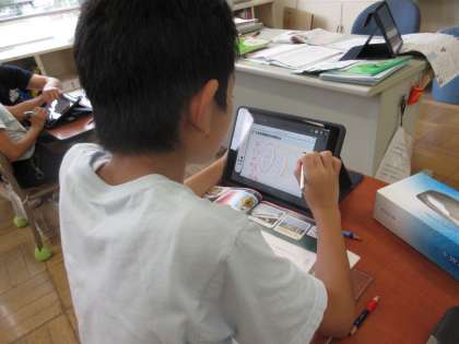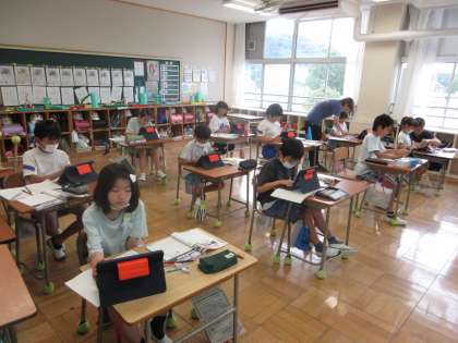 めあて「四角形の仲間分けの仕方を考えよう」を立て、つなぎ教材「平行な辺に着目」をもとに考えました。