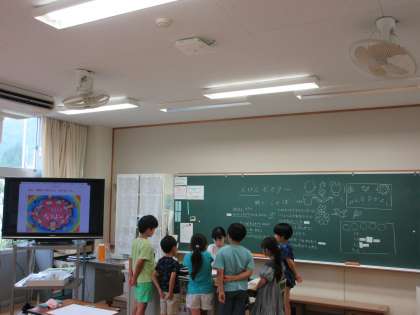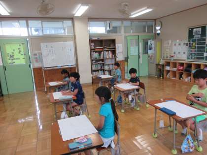 7月9日(火) 2年図工【進んで学ぶ子】 公開日 2024/07/09 更新日 2024/07/09 できごと 人権ポスターを描いています。友達と仲良くすることの大切さが伝わるように上手に描きました。文字が目立つように色塗りの工夫を先生から学びました。