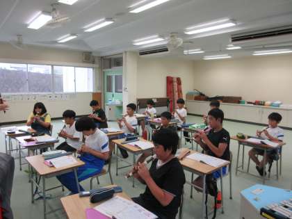 7月9日(火) 6年音楽【進んで学ぶ子】 公開日 2024/07/09 更新日 2024/07/09 できごと 「ラバースコンチェルト」の学習で、リコーダーの美しい音色を響かせ演奏することができました。