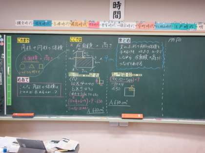 9月3日(火) 6年算数【進んで学ぶ子】 公開日 2024/09/03 更新日 2024/09/03 できごと めあて「こんな角柱の体積はどのように求めるか?」を立て、一部欠けている四角柱の求め方を、これまでの学習を想起しながら考えました。