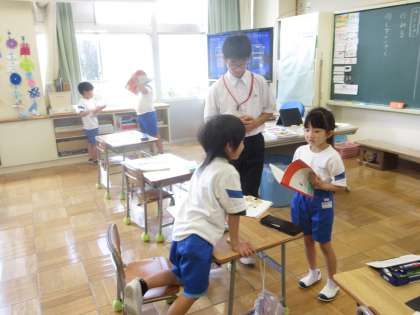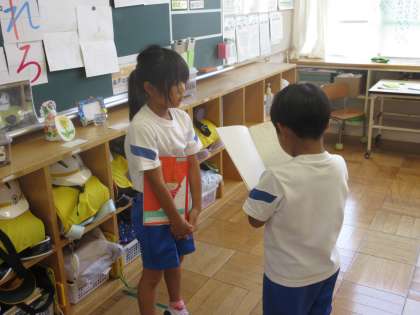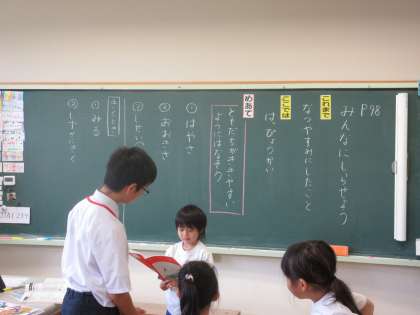9月5日(木) 1年国語【進んで学ぶ子】 公開日 2024/09/05 更新日 2024/09/05 できごと 「みんなにしらせよう」で、めあて「ともだちがききやすいようにはなそう」を立て、はやさや声の大きさ、姿勢に気をつけて練習をしました。