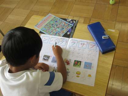 新しいカタカナ「パ」と「ダ」を習いました。文字の形を整えて書けるように頑張っています。