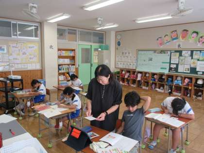 9月12日(木) 3年国語【進んで学ぶ子】 公開日 2024/09/12 更新日 2024/09/12 できごと 「はがき」の書き方を学びました。運動会の招待状を家族に書いて、とってもうれしそうでした。