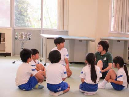 2拍子のリズムについて学んでいます。授業のはじめに、2拍子のリズムにつながるリズム遊びをみんなで楽しみました。