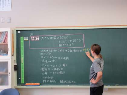 9月13日(金) 4年社会【進んで学ぶ子】 公開日 2024/09/13 更新日 2024/09/13 できごと 「大きな地震が起きると、どんなことが起こるのか、困ることは何か」について考えました。個人で考えた後、ペアで交流し、全体で共有しました。