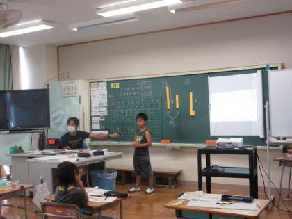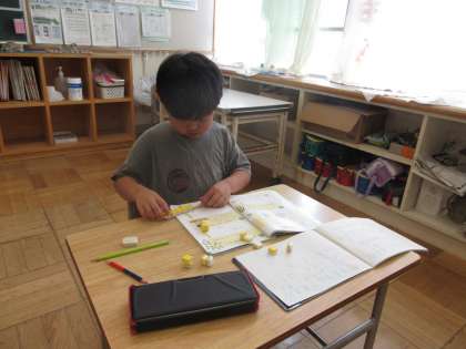 めあて「10よりおおきいかずのたしざんは?」を立て、ブロックを使いながら考えました。