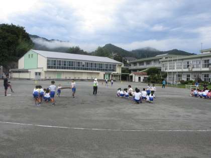 9月19日(木) 運動会全体練習【たくましい心身をもつ子】 公開日 2024/09/19 更新日 2024/09/19 できごと 業前活動に引き続き、1時間目は全校で運動会練習を行いました。雨もやんだことから、外に場所を移し、遊競技の基本的な動きと、ソーラン節の踊りを行いました。