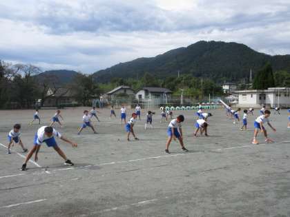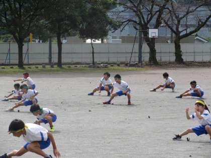 9月19日(木) 運動会全体練習【たくましい心身をもつ子】 公開日 2024/09/19 更新日 2024/09/19 できごと 業前活動に引き続き、1時間目は全校で運動会練習を行いました。雨もやんだことから、外に場所を移し、遊競技の基本的な動きと、ソーラン節の踊りを行いました。