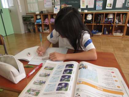 9月20日(金) 5年理科【進んで学ぶ子】 公開日 2024/09/20 更新日 2024/09/20 できごと めあて「台風はどのように動くのか?」を立て、教科書に掲載された4日間の台風の位置に印を付けながら、台風の動き方について考えました。