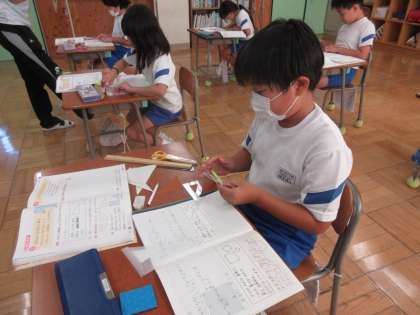 10月2日(水) 2年算数【進んで学ぶ子】 公開日 2024/10/02 更新日 2024/10/02 できごと めあて「できたさんかく形のとくちょうをしらべよう」を立て、直角三角形について学習しました。