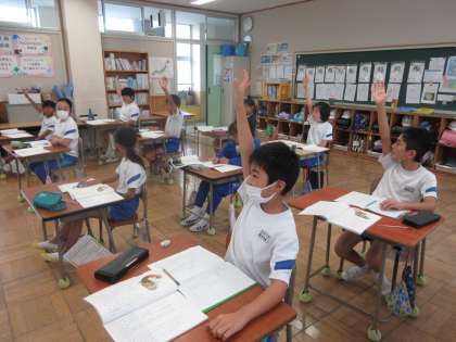 10月4日(金) 4年国語【進んで学ぶ子】 公開日 2024/10/04 更新日 2024/10/04 できごと 「ごんぎつね」で、めあて「ごんが兵十にしたことと、そのときの兵十とごんの気持ちを 考えよう」を立て、3段落のごんがしたことに対してのごんと兵十の気持ちを読み取りました。