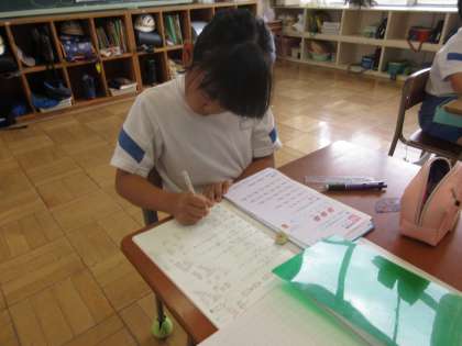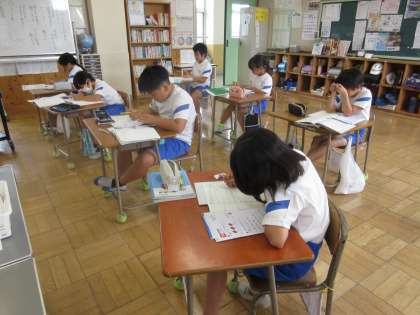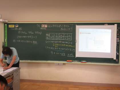 めあて「仮の平均をお使って平均を求めるには?」を立て、きりのいい数を仮の平均として、端数のみを計算して仮の平均を後から足す方法について考えました。