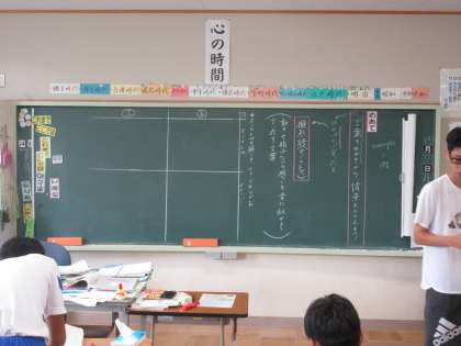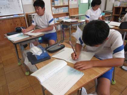 10月7日(月) 6年国語【進んで学ぶ子】 公開日 2024/10/07 更新日 2024/10/07 できごと 「やまなし」で、めあて「言葉のひびきから情景をとらえよう」を立て、擬態語(オノマトペ)を探して、イメージを話し合いました。