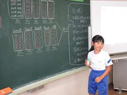 10月8日(火) 3年算数【進んで学ぶ子】 公開日 2024/10/08 更新日 2024/10/08 できごと めあて「1億は100万をいくつ集めた数か」を立て、一人一人が自分の考えをもち、求め方を発表し合いました。