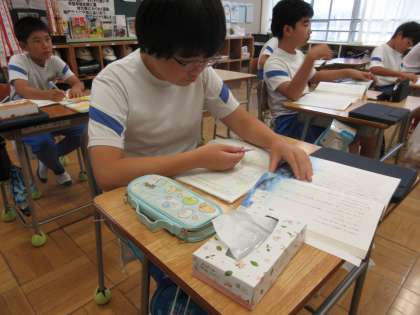 10月8日(火) 6年国語【進んで学ぶ子】 公開日 2024/10/08 更新日 2024/10/08 できごと 「やまなし」で、めあて「言葉のひびきから情景をとらえよう」を立て、前時の続きを行いました。