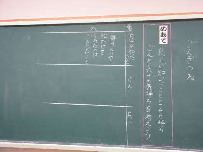 10月8日(火) 4年国語【進んで学ぶ子】 公開日 2024/10/08 更新日 2024/10/08 できごと 「ごんぎつね」で、めあて「兵十が知ったことと、その時のごんと兵十の気持ちを考えよう」を立て、ごんが毎日栗や松茸をくれたことを知った時の兵十とごんの気持ちを読み取りました。
