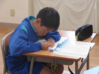 10月8日(火) ひびき国語 公開日 2024/10/08 更新日 2024/10/08 できごと 「やまなし」で、めあて「五月と十二月の違いを見つけよう」を立て、それぞれの風景が描かれている場面に着目して、違いを見つけました。