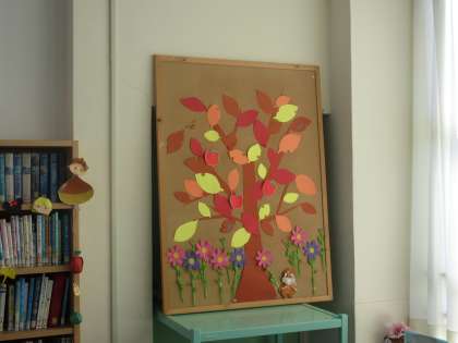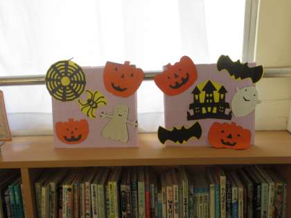図書ボランティアの方々によって、図書室が秋バージョンに生まれ変わりました。