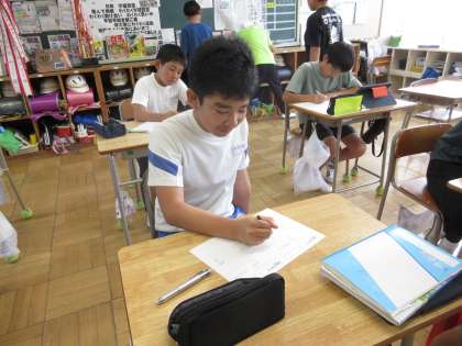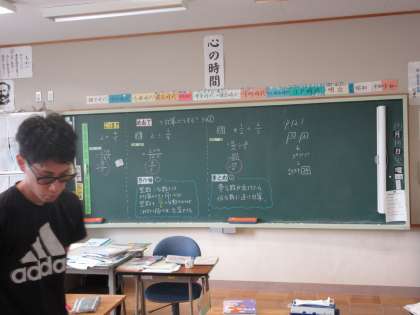 めあて「この計算はどうする?」を立て、整数÷分数や、帯分数÷分数など、これまで学習してきたことの確認問題に取り組みました。