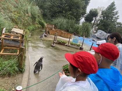 ペンギンコーナーに到着しました。近くで見られて嬉しそうな子ども達です。