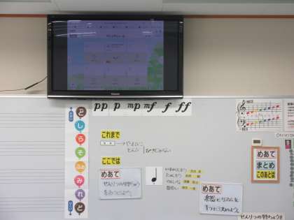 10月24日(木) 4年音楽【進んで学ぶ子】 公開日 2024/10/24 更新日 2024/10/24 できごと 「せんりつの特徴を考える」ことをめあてに学習を進めました。全員で曲を聴き、聞いて考えた旋律の特徴を個々のタブレットに入力し、共有しました。
