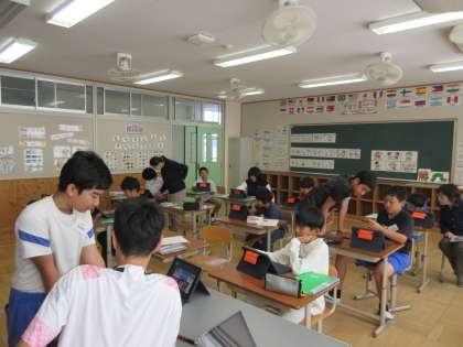 10月24日(木) 6年外国語【進んで学ぶ子】 公開日 2024/10/24 更新日 2024/10/24 できごと 自分の好きな国をみんなに紹介するため、プレゼン準備を進めています。どんな資料を使って、どのような言葉で相手に伝えるとよいか、考えることができました。