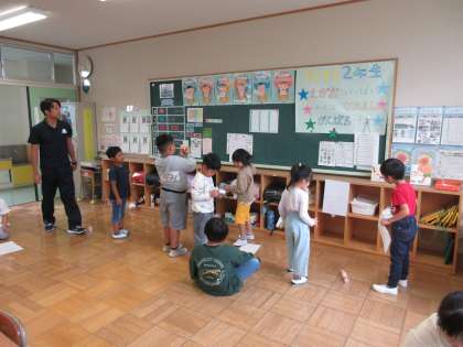 10月24日(木) 1,2年生活科【思いやりのある子】 公開日 2024/10/24 更新日 2024/10/24 できごと 動くおもちゃ大会!2年生が作った動くおもちゃを1年生にやってもらいました。2年生がリーダーになって1年生を楽しませることができました。