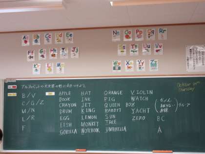 「アルファベットの大文字の形に気をつけよう」をめあてに学習に取り組みましたアルファベットの形をもとに、自分オリジナルのグループ分けを行いました。