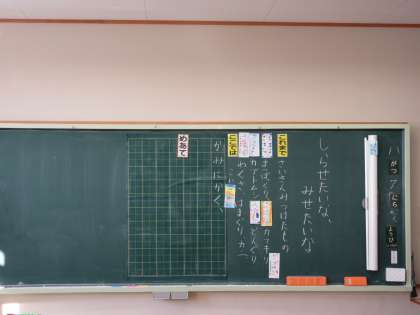 11月7日(木) 1年国語【進んで学ぶ子】 公開日 2024/11/07 更新日 2024/11/07 できごと 「しらせたいな みせたいな」の学習を進めています。知らせる方法は、どのような方法があるのか、何について知らせたいかをとっても楽しそうに考えることができました。
