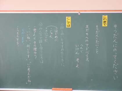 11月7日(木) 2年国語【進んで学ぶ子】 公開日 2024/11/07 更新日 2024/11/07 できごと 「そうだんにのってください」の学習で、自分が相手に話したい相談を明確にし、それに対して友だちがアドバイスをしてくれました。相手意識をもった話し方を学んでいます。
