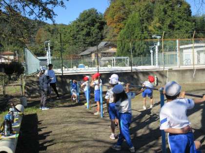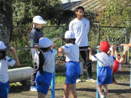 11月7日(木) 1,2年体育【健康な心身をもつ子】 公開日 2024/11/07 更新日 2024/11/07 できごと きれいな青空の下、持久走の練習を頑張った後、鉄棒あそびに取り組みました。自分が得意な技をみんなに見せるなど、張り切って運動に取り組むことができました。