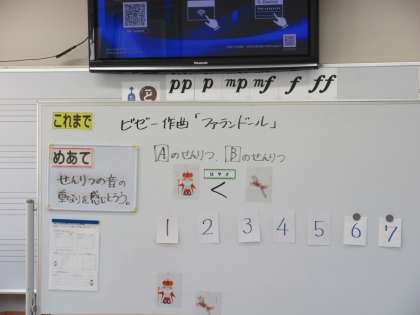 11月7日(木) 4年音楽【進んで学ぶ子】 公開日 2024/11/07 更新日 2024/11/07 できごと 「旋律の音の重なりを感じとろう」をめあてに学習を行いました。「ファランドール」を鑑賞しながら、王様と馬をイメージして音楽を楽しみました。