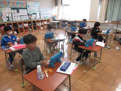 11月15日(金) 2年国語【進んで学ぶ子】 公開日 2024/11/15 更新日 2024/11/15 できごと 「おもちゃを作って、じゅんじょが分かるように、せつめいしよう」を立て、おもちゃ作りをしながら、作り方の説明文作りも行いました。