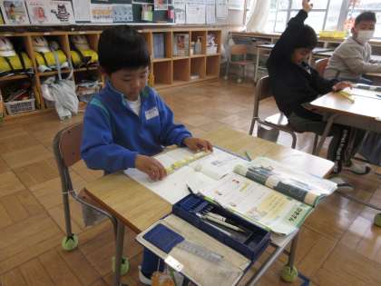 「ひきざん」で、めあて「13−9はどうするか?」を立て、繰り下がりのある引き算のしかたを考えました。