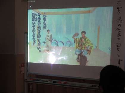 11月15日(金) 6年国語【進んで学ぶ子】 公開日 2024/11/15 更新日 2024/11/15 できごと めあて「狂言「柿山伏」を楽しもう」を立て、狂言の映像を見ながら、どんなところに面白さ、楽しさがあるのか考えたり、話し合ったりしました。