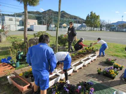 環境・保健委員会のメンバーで花壇にパンジー植えました。冬の寒さに負けずきれいに咲いてくれることでしょう。