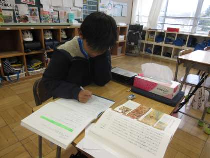 11月20日(水) 6年国語【進んで学ぶ子】 公開日 2024/11/20 更新日 2024/11/20 できごと 「鳥獣戯画を読む」で、めあて「筆者が評価しているというのは、どこから分かるのか探ろう」を立て、本文を読み筆者の考えが書かれている部分見つけ、そこからどのような評価をしていることを読み取りました。