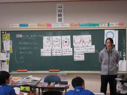 11月20日(水) 6年体育【たくましい心身をもつ子】 公開日 2024/11/20 更新日 2024/11/20 できごと めあて「むし歯、歯周病の予防について知ろう」立て、歯の健康を保つために必要なことを学習しました。